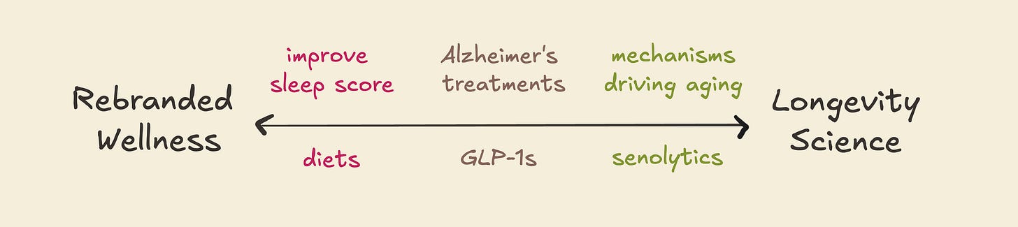 Thank you for pointing out that "Rebranded Wellness" shouldn't be considered longevity. Advice of healthy diet, sleep, and exercise isn't new or groundbreaking.