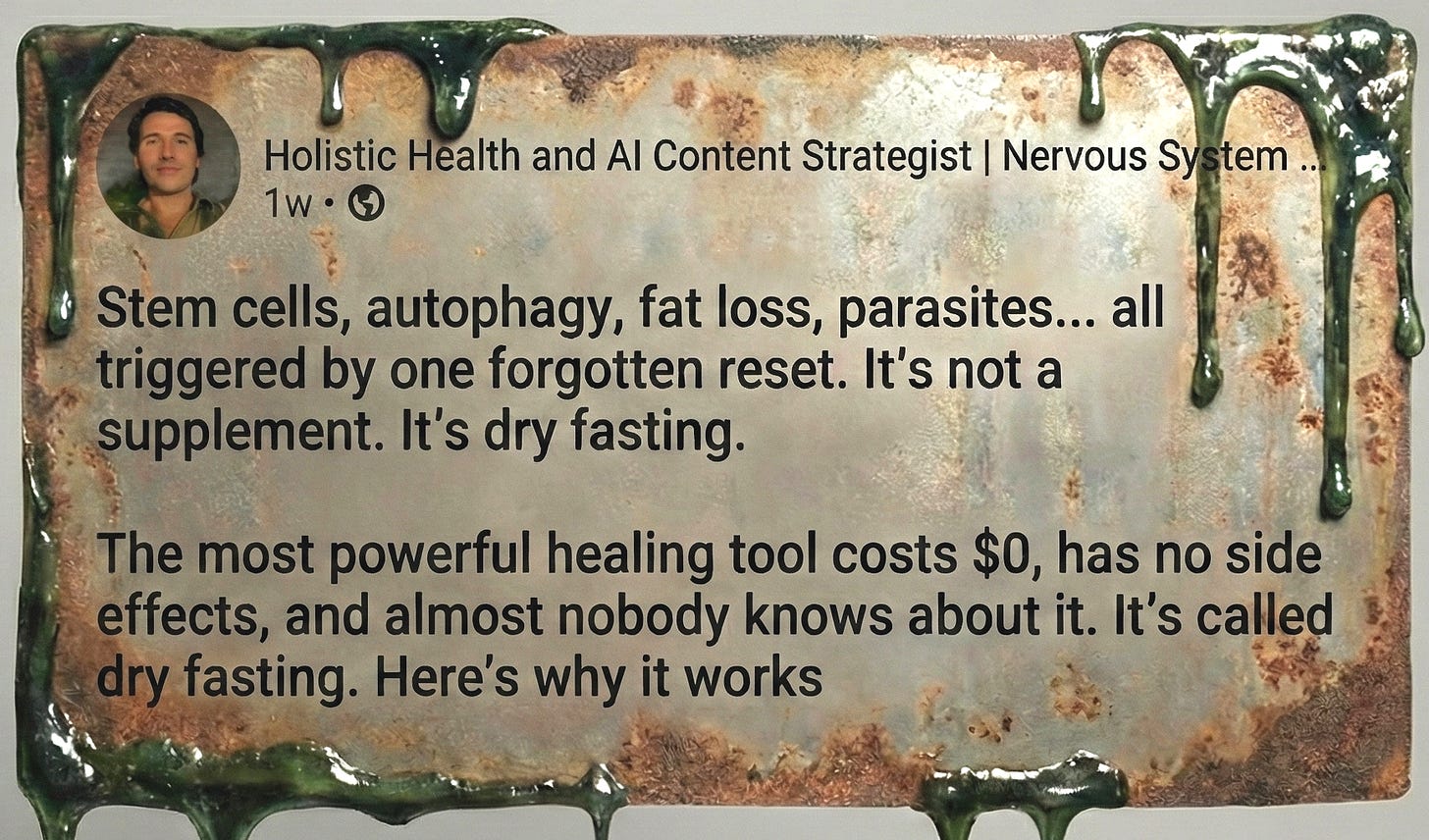 People have written about the dead internet and brain-rot perils of slop content (and sometimes in pseudo-defense of it). But we are here to warn you about another peril. For the Shloppoth and its marketer acolytes are not content to post about work-life balance and investment advice. They are ever seeking fertile topics to devour, and this year have come upon the sapling forest known as “longevity”.