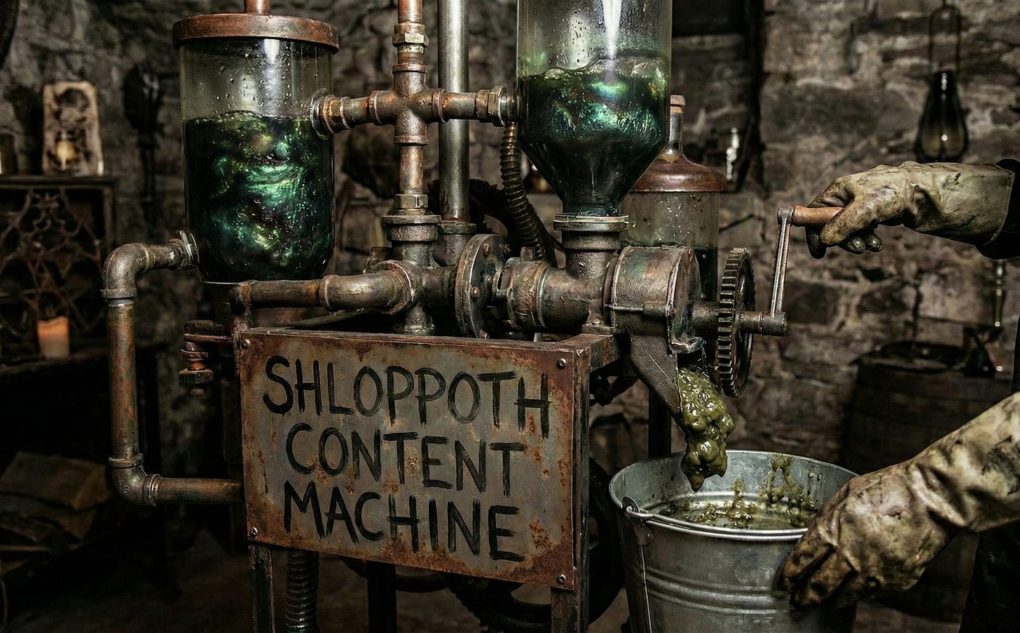 Certainly no thoughtful curator was involved in recommending you avoid drinking water for seven days1. The Shloppoth does not seek to understand what it posts, merely to shape words into the most view-optimized form by hijacking our curiosity and tendency to trust ‘explainers’. It is the triumph of volume over value, content with a polished appearance concealing an gaping void. The output of an inhuman abomination ingesting news and press releases and turning them into engagement.