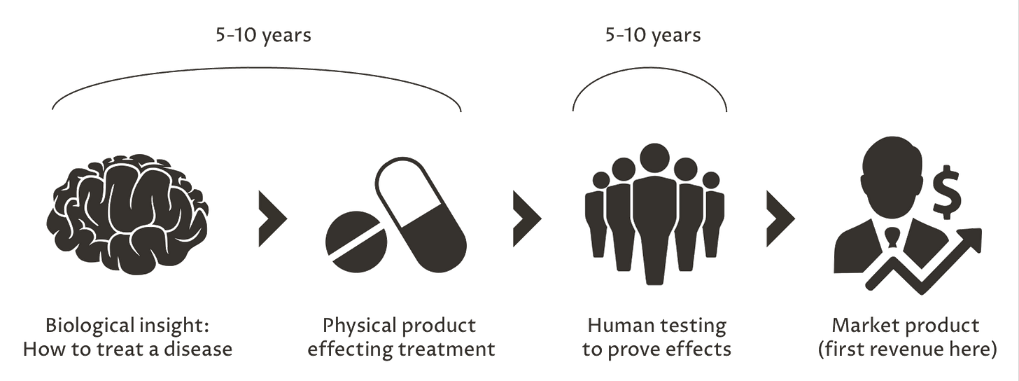 To start off, let’s quickly review why value creation in biotech is harder than most industries. This creates a baseline for the scope of the challenge.